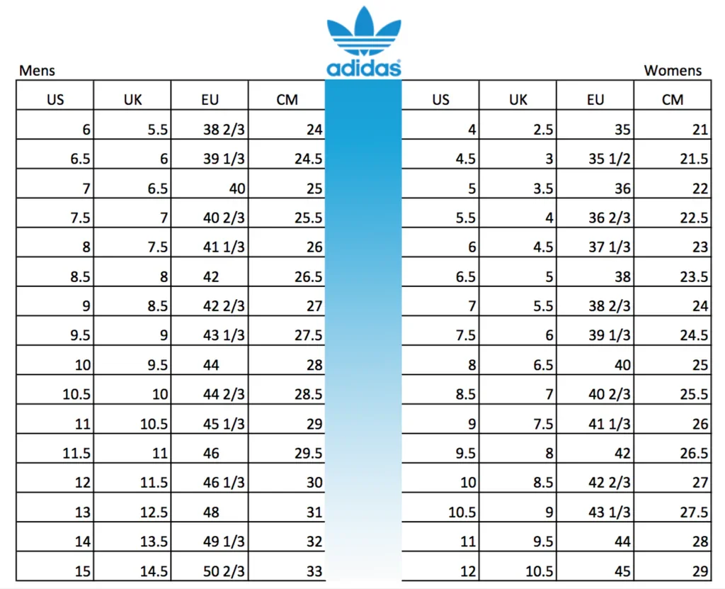 Adidas are listed in US sizing.